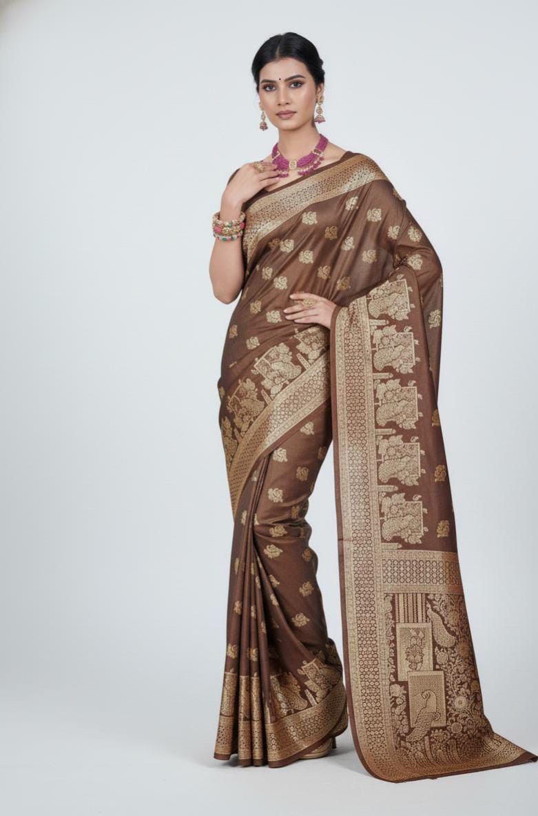 latest collection of traditional silk saree designs at Taneira. Explore handwoven, ikat, & pure silk sarees for women